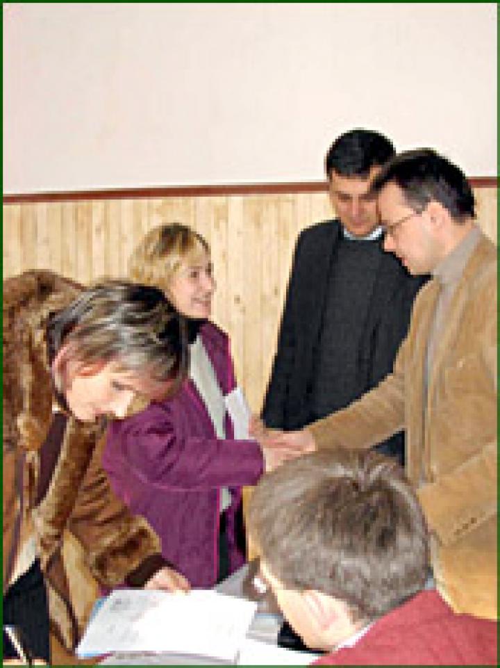 Az elnyert összeg első felének átadására 2005. december 17-én került sor az Aknaszlatinai Bolyai János Középiskolában, illetve a szolyvai magyar óvodában. A támogatást a Hármashalom Alapítvány képviseletében Simon Attila István, Szakáli István Loránd, Fazekas Róbert és Márkusfalvi Ádám nyújtotta át a huszti, técsői, aknaszlatinai, nagybocskói, rahói, kőrösmezői és szolyvai pedagógusoknak.