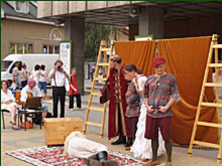 Beregszász központjában, a járási kultúrház előtti téren, a piaci árusok szomszédságában lépett fel a Leányfalui Szekér Színház, amely fokozatosan jókora tömeget vonzott maga köré. Mint Póka Éva színművésznőtől, a színház rendezőjétől megtudtam: "A Szekér Színház ötletét Déryné ekhós szekere és a Kelemen-társulat színjátszói adták. Miért ne lehetne ma is, 200 év múlva valami hasonló hangulatú színházat alapítani? Fölidézni a XVIII. századi vásári játékokat - akár itt, Beregszászban a piac bejáratánál, ami tagadhatatlanul ideális helyszín."