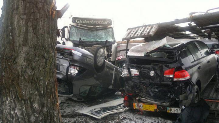 A karambol okainak két előzetes verzióját vizsgálta a közlekedésrendészet. Az egyik szerint a jeges úton nagy sebességgel haladó kamion nem tudott lefékezni, és belerohant egy másik, személygépkocsikat szállító kamionba. A másik verzió szerint az utánfutóján autókat szállító kamion előzés után nem tudott időben visszasorolni a menetsávjába, és a szemből érkező kamion nekiütközött az utánfutónak.