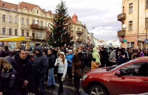 A kormány politikája és a halálos áldozatokat is követelő brutális kijevi tömegoszlatás ellen tiltakozó ungvári tüntetők délután szállták meg a Petőfi teret, ahol kormányellenes jelszavakat skandáltak, és csatlakozásra buzdították az autósokat és a járókelőket. A közel ezer főből álló tömeg állandó mozgásban volt a zebrákon, megbénítva ezzel a téren áthaladó gépjármű-forgalmat. Az akció során a türelmetlen autóvezetők dühös dudálással fejezték ki nemtetszésüket, de sokan megértőbbnek bizonyultak, és türelmesen vártak, illetve más útvonalat választottak.