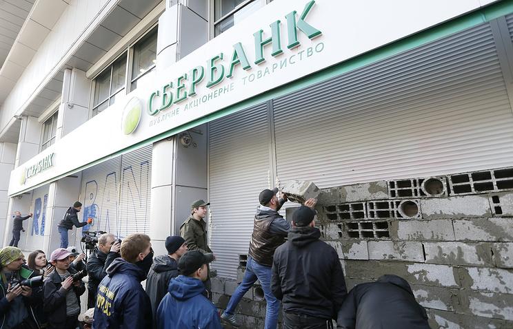Moszkva Ukrajna-politikája ellen tiltakozók hétfőn elkezdték befalazni az orosz Szberbank kijevi leányfiókjának bejáratát, mondván, hogy a ha ukrán államvezetés nem képes bezáratni a pénzintézetet, akkor azt polgárjogi aktivisták teszik meg.