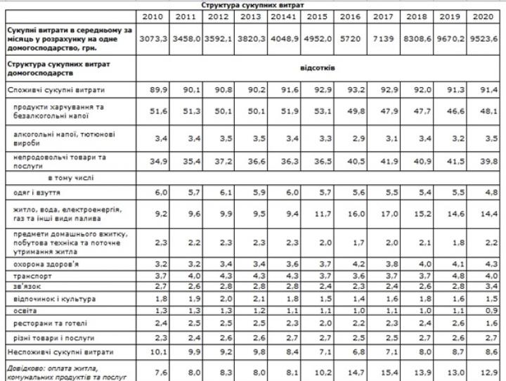 Az Állami Statisztikai Szolgálat (Derzssztat) közzétette a háztartások összes kiadására vonatkozó adatokat a 2010–2020 közötti időszakból – jelentette a korrespondent.net.