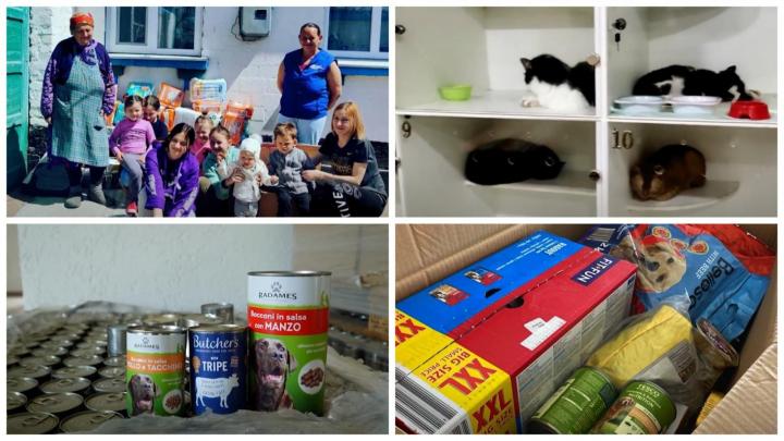 A háború nemcsak az emberek, hanem a házi kedvencek életét is befolyásolja. Ott, ahol nemrég még harcok folytak, számos kutya és macska maradt felügyelet és ellátás nélkül. Az állatok éheztek, ezért az őket felkaroló menhelyeknek elsősorban tápra van szüksége, s ezek már meg is érkeztek oda.