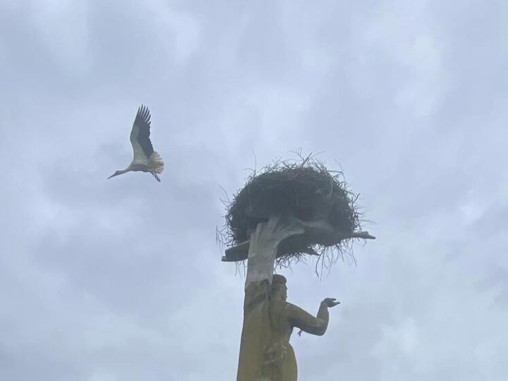 „Valamikor júniusban kelnek ki a gólyafiókák. Meg kell várni az őszt, amikor elrepülnek a vándormadarak rajával. Ezután a fészket autókerékre lehet helyezni és átvinni egy fára. Most a fészek ehhez a figurához van rögzítve, nem lehet leverni” – magyarázta Anna Herics.