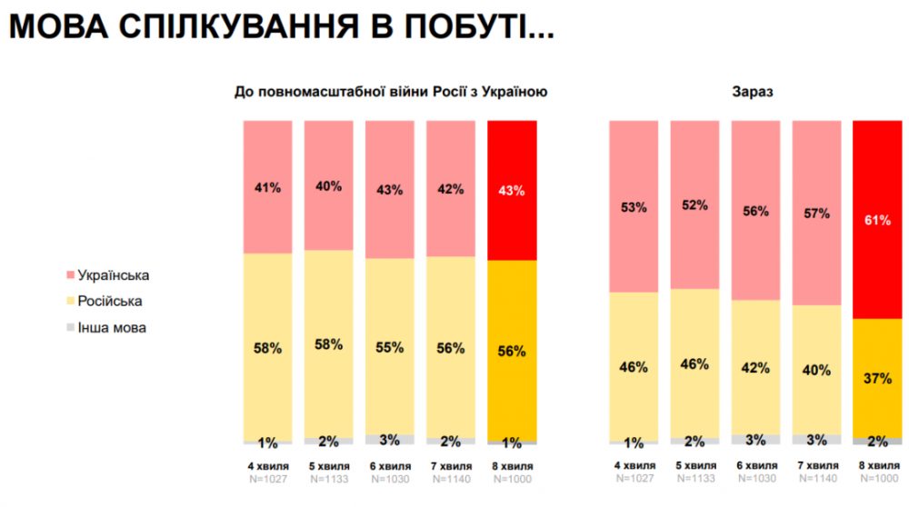 A mindennapi életben az ukrán polgárok 61%-a ukránul kommunikál – jelentette az Ukrinform A társadalom foka a háború alatt című kutatás nyolcadik hullámának adataira hivatkozva.