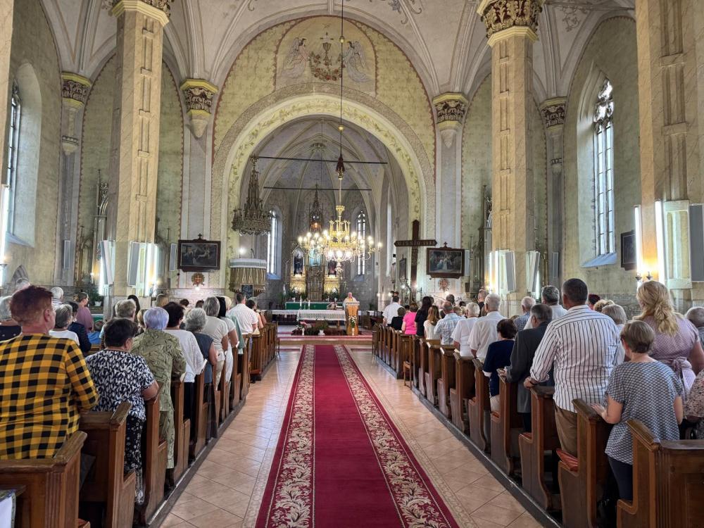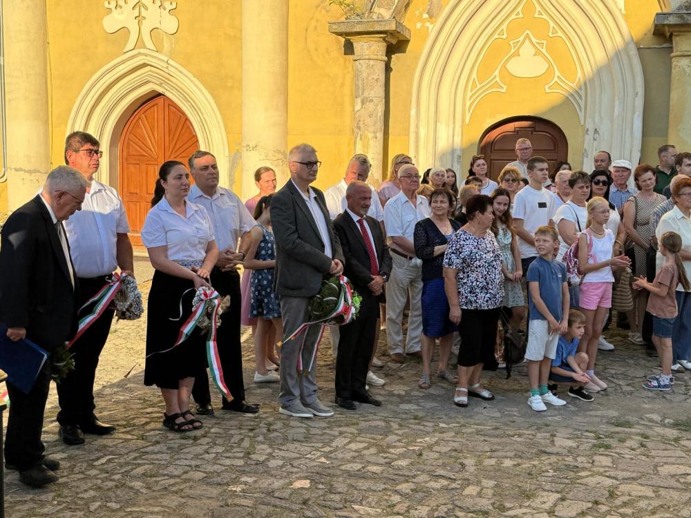 A beregszászi és térségi intézmények, civil szervezetek, egyházak képviselői elhelyezték koszorúikat IV. Béla szobra előtt, majd megkoszorúzták Szent István királynak a templomudvaron álló szobrát is.