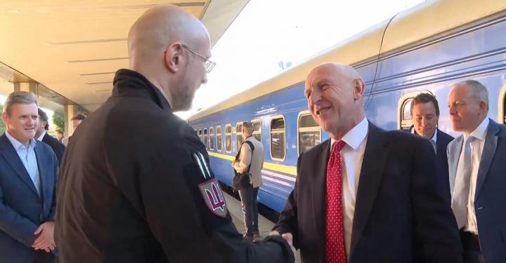 Smihal a kijevi vasútállomáson fogadta brit kollégáját.