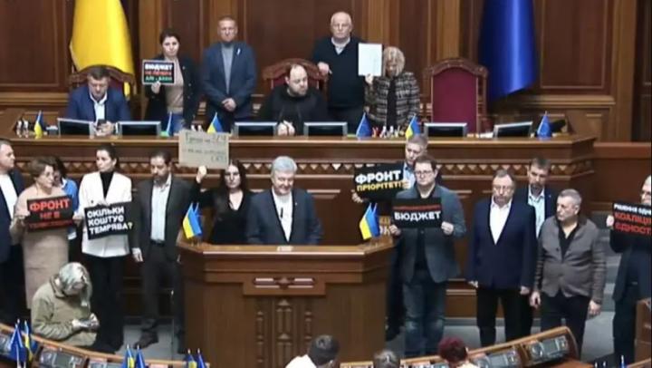 Az Európai Szolidaritás (JSZ) frakciója a mai plenáris ülésen blokkolta a Legfelső Tanács szónoki emelvényét, követelve a kormány lemondását – jelentette az Ukrajinszka Pravda december 2-án, kedden.